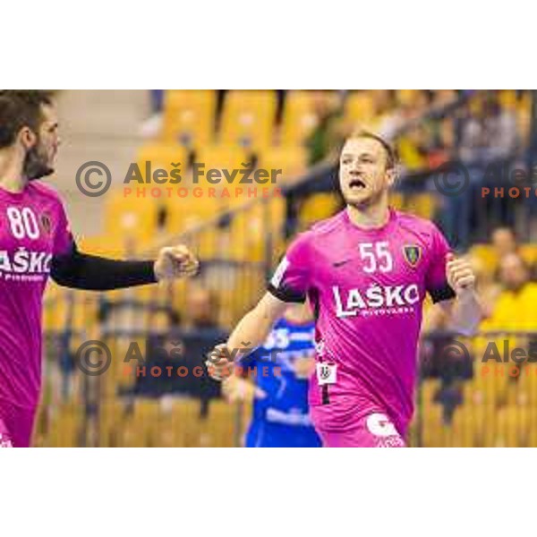 Description: Celje’s Ziga Mlakar (55) in action during EHF Champions League match between Celje PL (Slovenia) and Meshkov Brest (Belarus) in Zlatorog Hall, Celje on October 14th, 2017