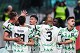 Ivan Durdov and players of Olimpija celebrate a goal during UEFA Conference League 2024/25 football match between Olimpija and Larne in Ljubljana, Slovenia on November 28, 2024