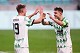 Ivan Durdov and Marcel Ratnik of Olimpija celebrate a goal during UEFA Conference League 2024/25 football match between Olimpija and Larne in Ljubljana, Slovenia on November 28, 2024